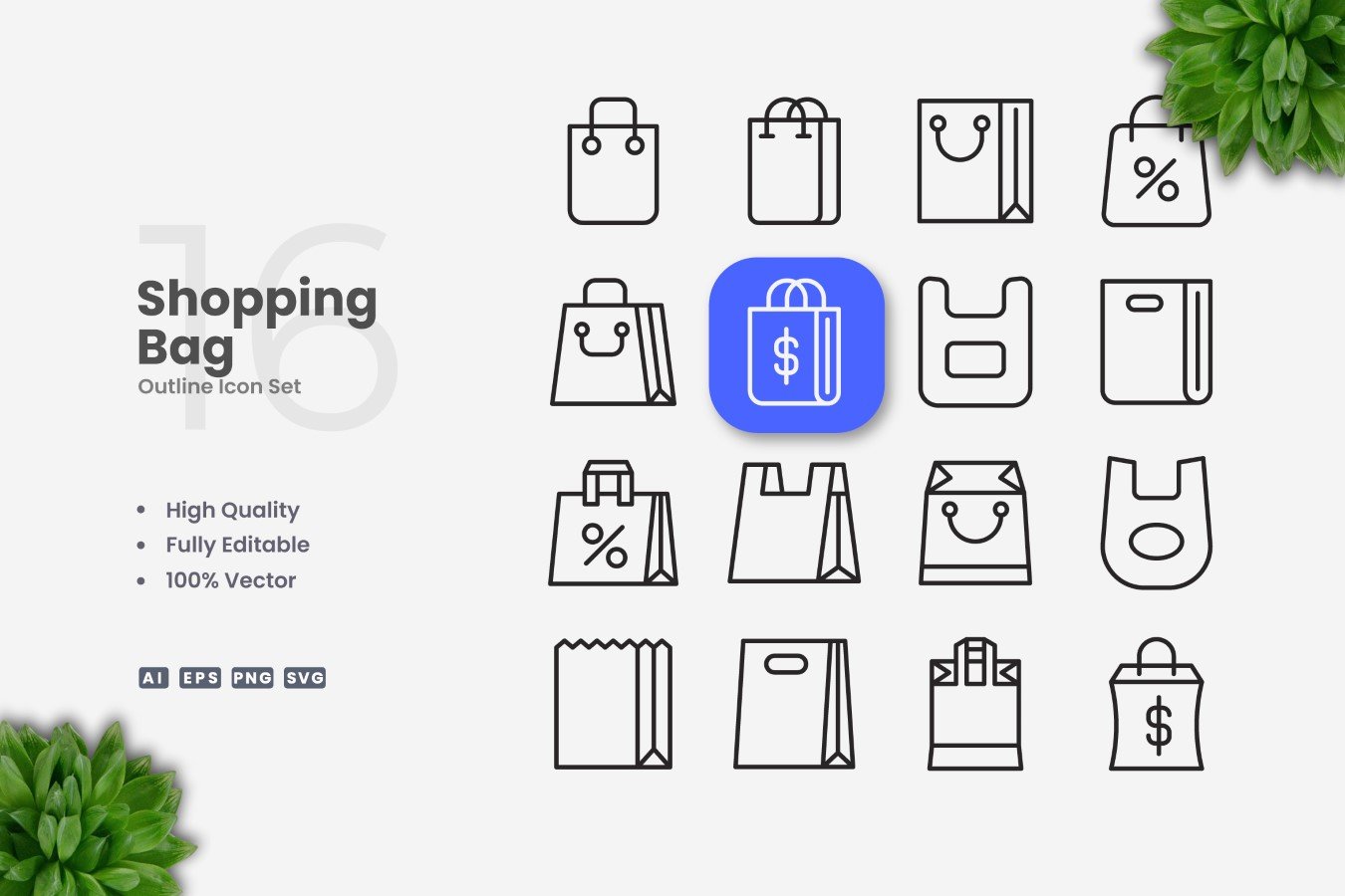 Set of 16 Shopping Bag outline icons | Simple and clean design, perfect for websites, mobile apps, books, social media, infographics, flyer, print, banners, posters and many more. To resize, change color, or edit stroke weight, you can easily edit on vector software like Adobe Illustrator and CorelDRAW.