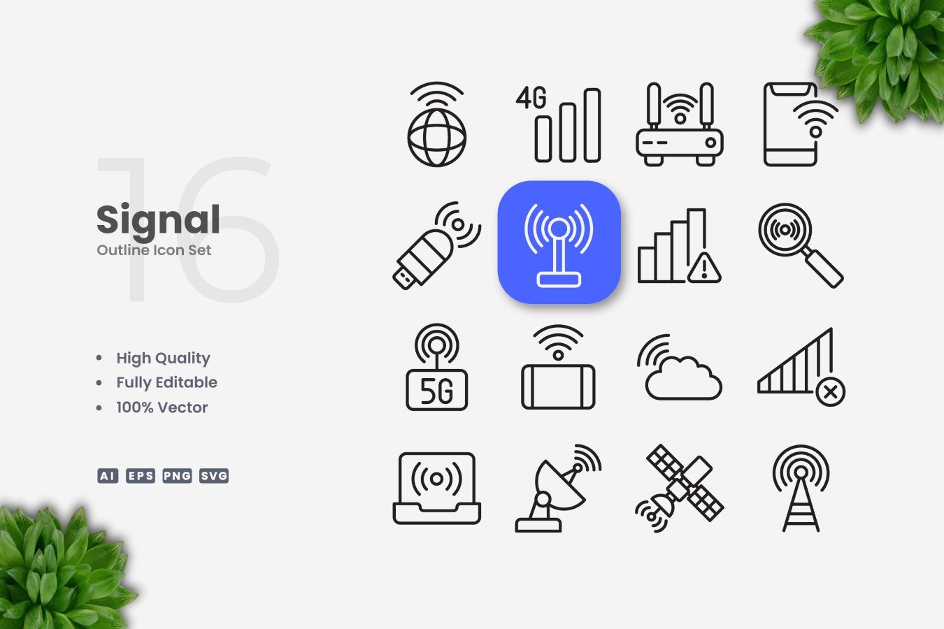Set of 16 Signal outline icons | Simple and clean design, perfect for websites, mobile apps, books, social media, infographics, flyer, print, banners, posters and many more. To resize, change color, or edit stroke weight, you can easily edit on vector software like Adobe Illustrator and CorelDRAW.