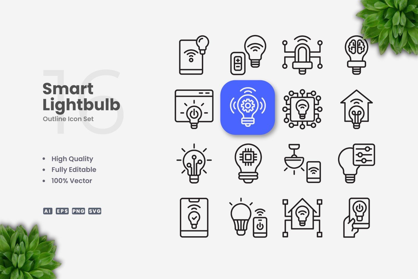Set of 16 Smart Lightbulb outline icons | Simple and clean design, perfect for websites, mobile apps, books, social media, infographics, flyer, print, banners, posters and many more. To resize, change color, or edit stroke weight, you can easily edit on vector software like Adobe Illustrator and CorelDRAW.