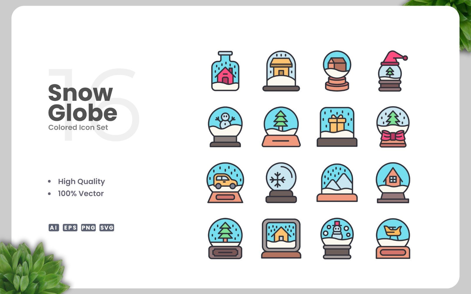 Set of 16 Snow Globe colored icons | Simple and clean design, perfect for websites, mobile apps, books, social media, infographics, flyer, print, banners, posters and many more. To resize or change color you can easily edit on vector software like Adobe Illustrator and CorelDRAW.