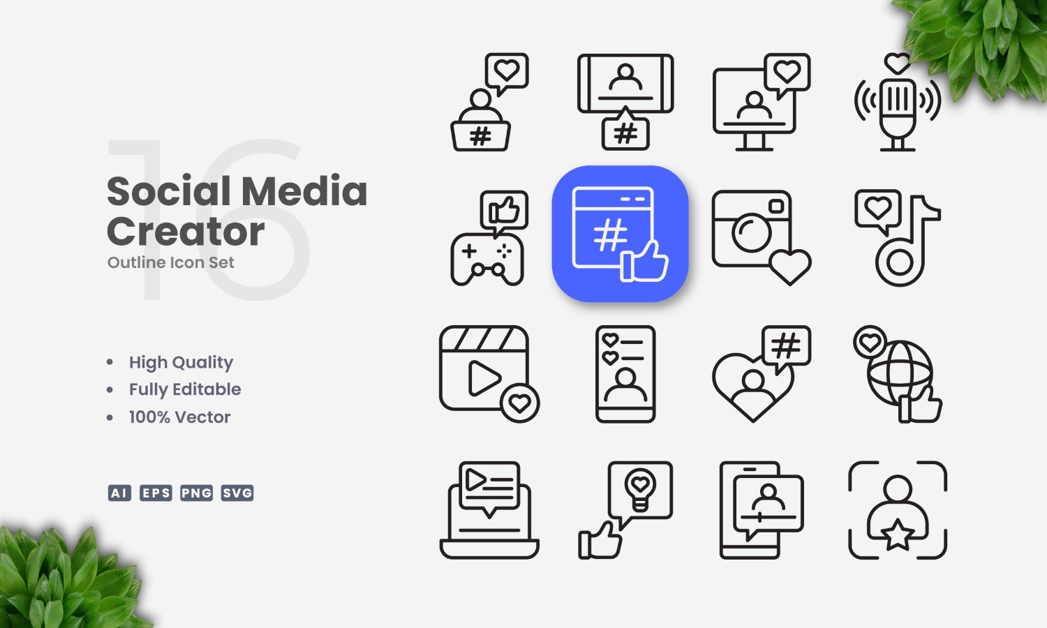 16 Social Media Creator Outline Icon Set