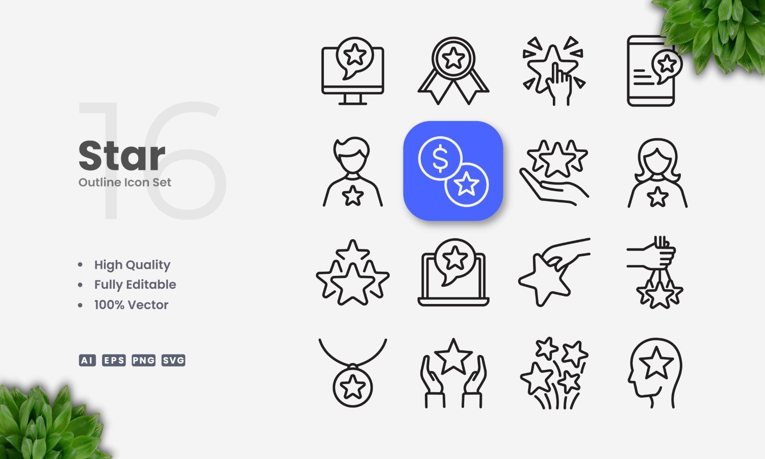 Set of 16 Star outline icons | Simple and clean design, perfect for websites, mobile apps, books, social media, infographics, flyer, print, banners, posters and many more. To resize, change color, or edit stroke weight, you can easily edit on vector software like Adobe Illustrator and CorelDRAW.