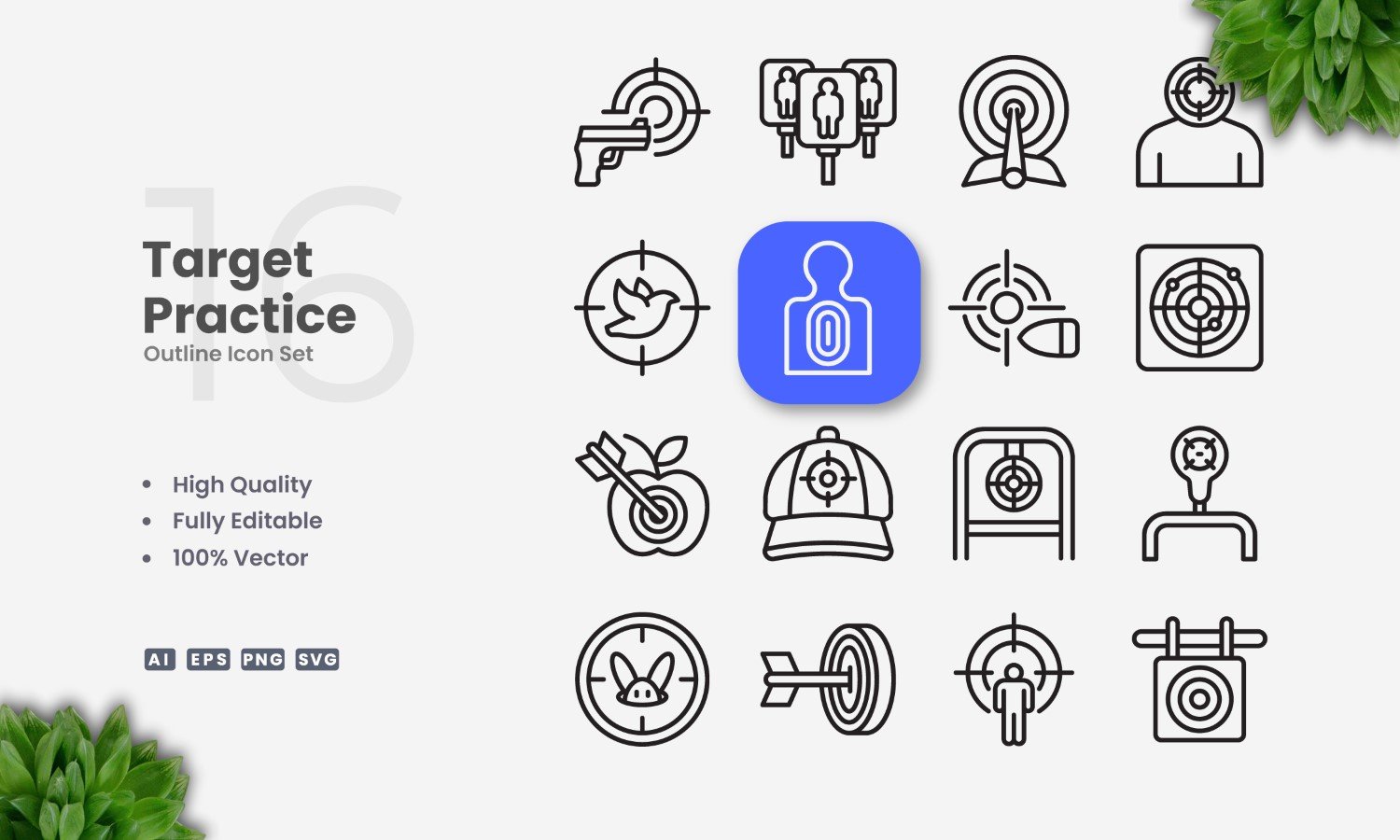 16 Target Practice Outline Icon Set