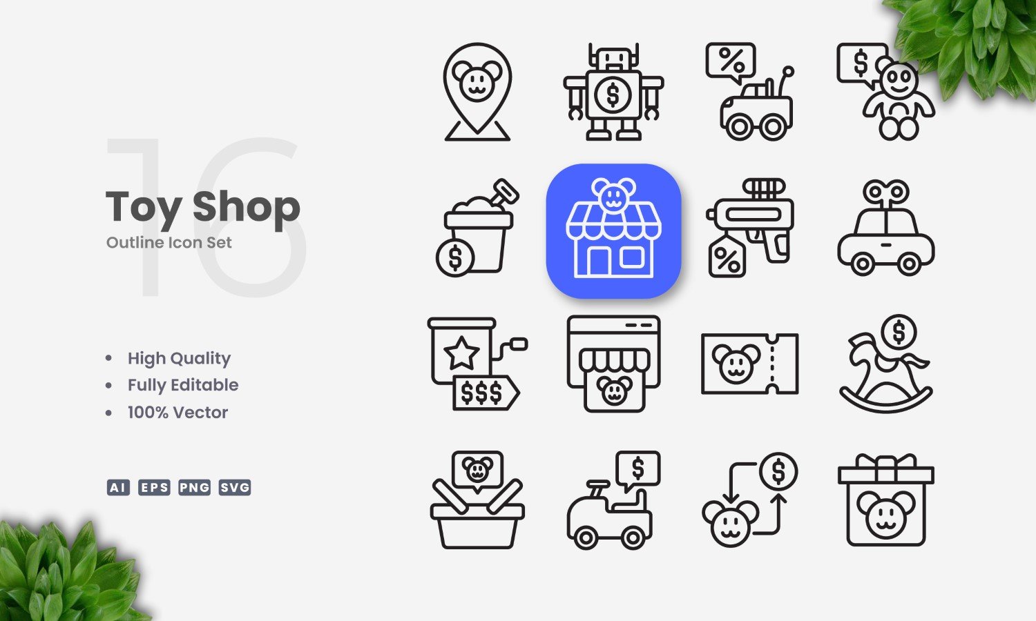 16 Toys Shop Outline Icon Set