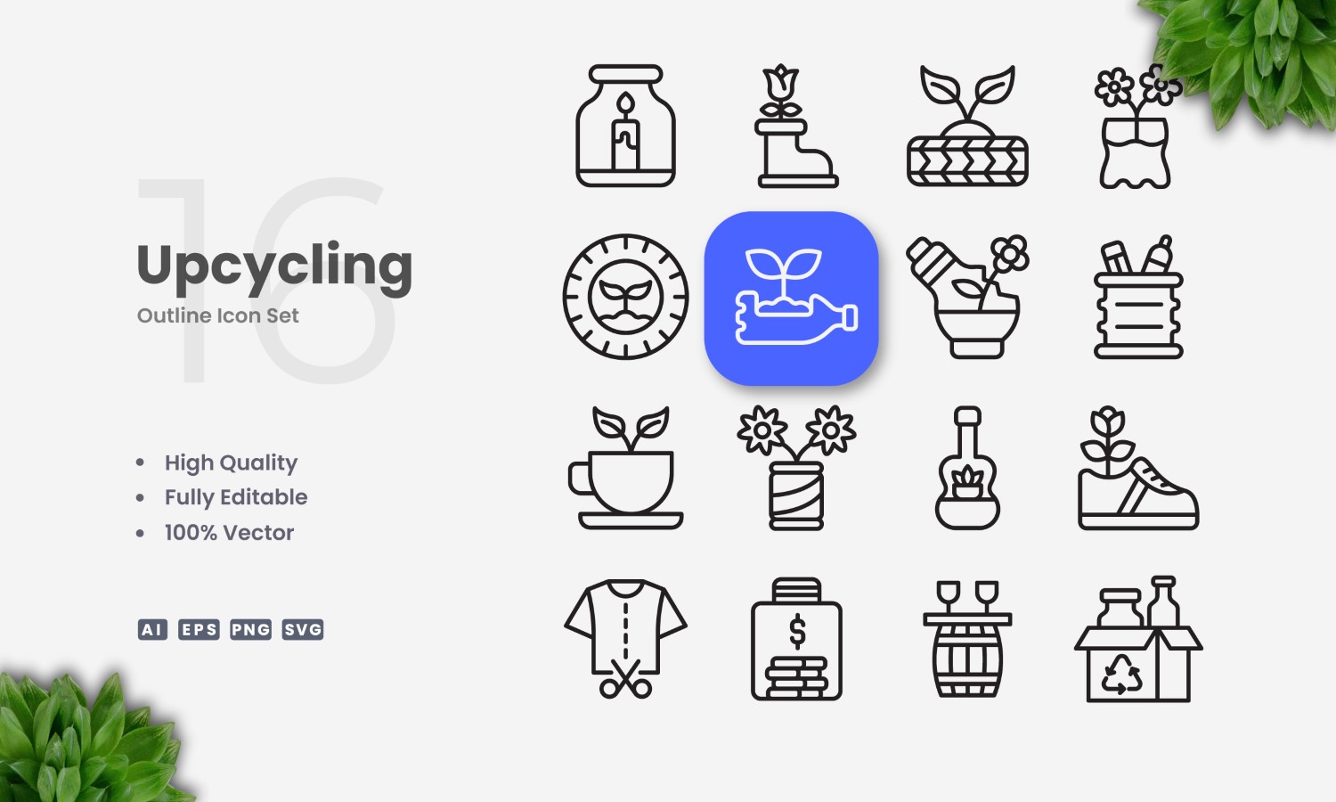 16 Upcycling Outline Icon Set