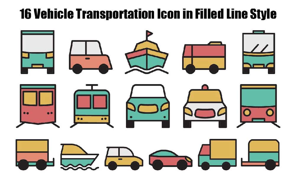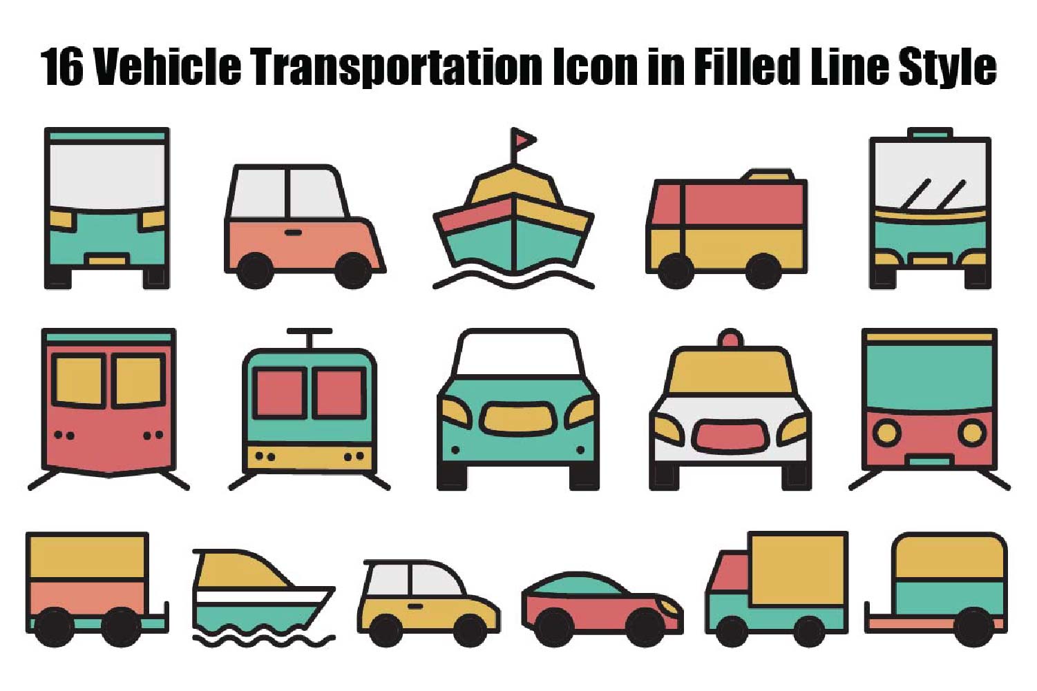 16 Vehicle Transportation Icon in Filled Line Style Icon Set
