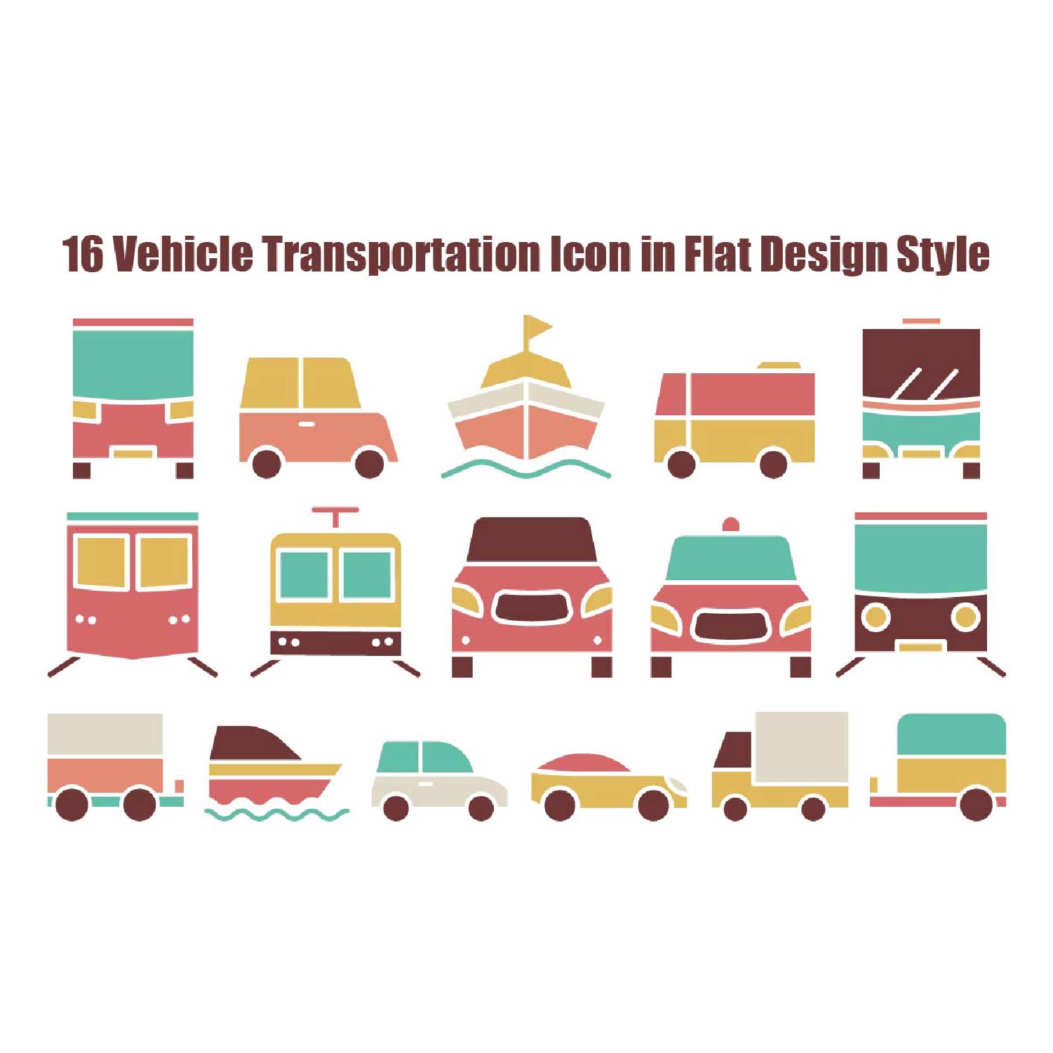 16 Vehicle Transportation Icon in Flat Design Style