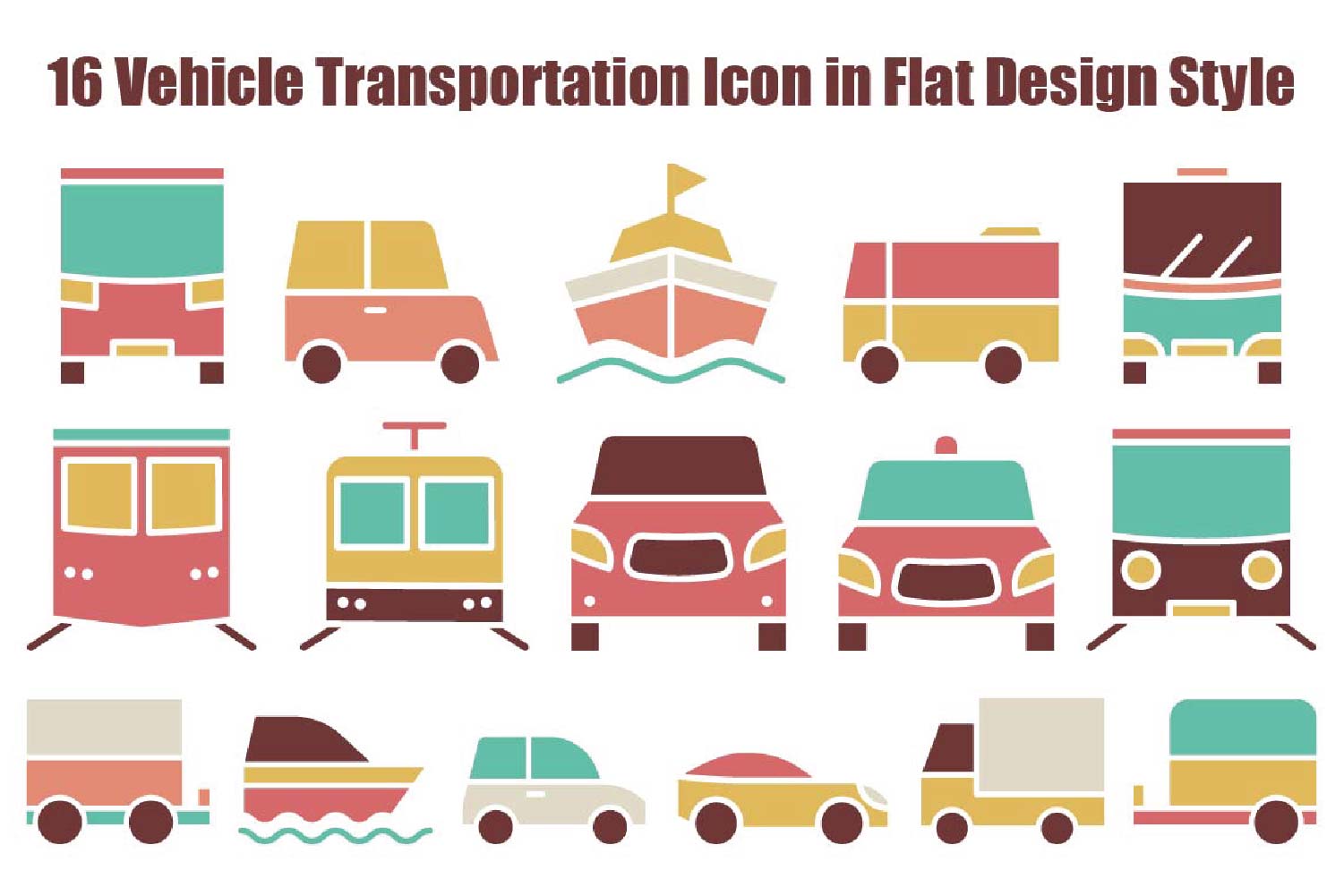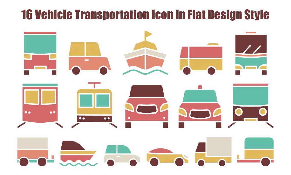 16 Vehicle Transportation Icon in Flat Design Style