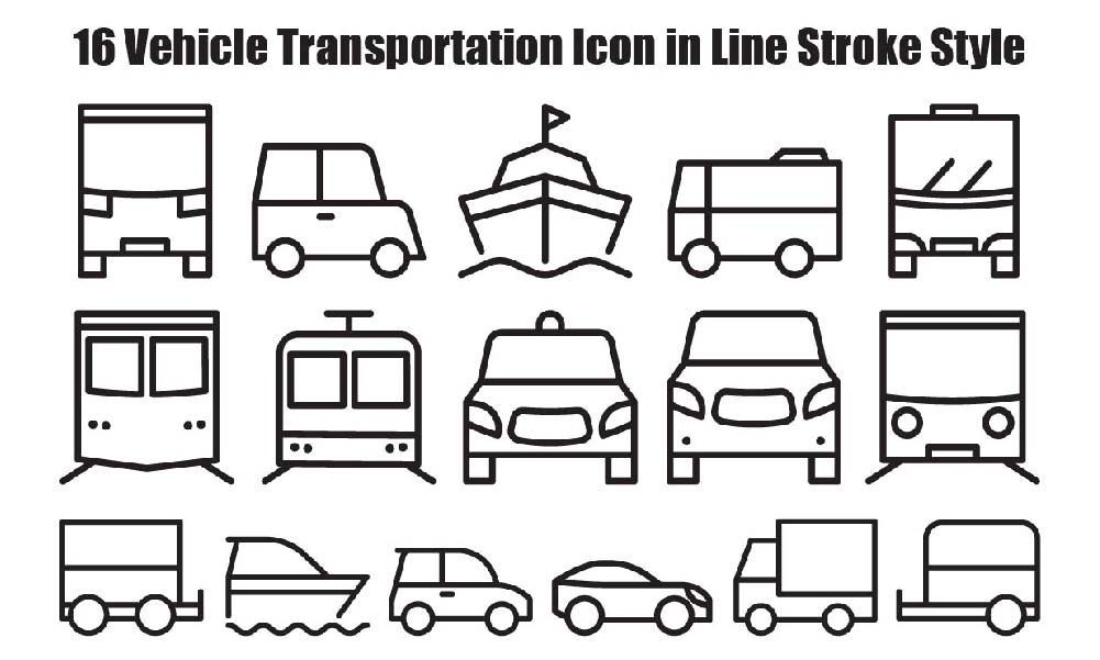 16 Vehicle Transportation Icon in Line Stroke Style Icon Set