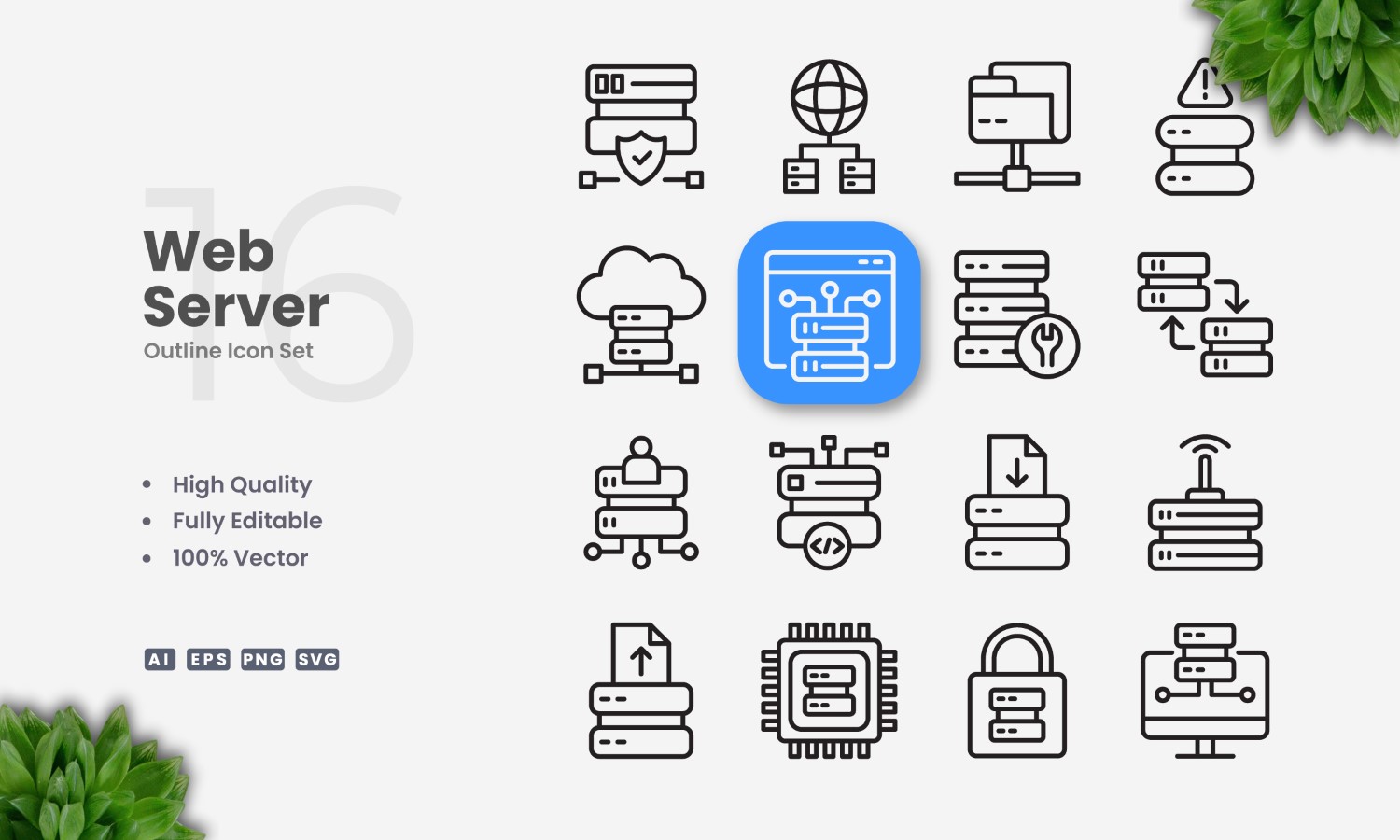 16 Web Server Outline Icon Set