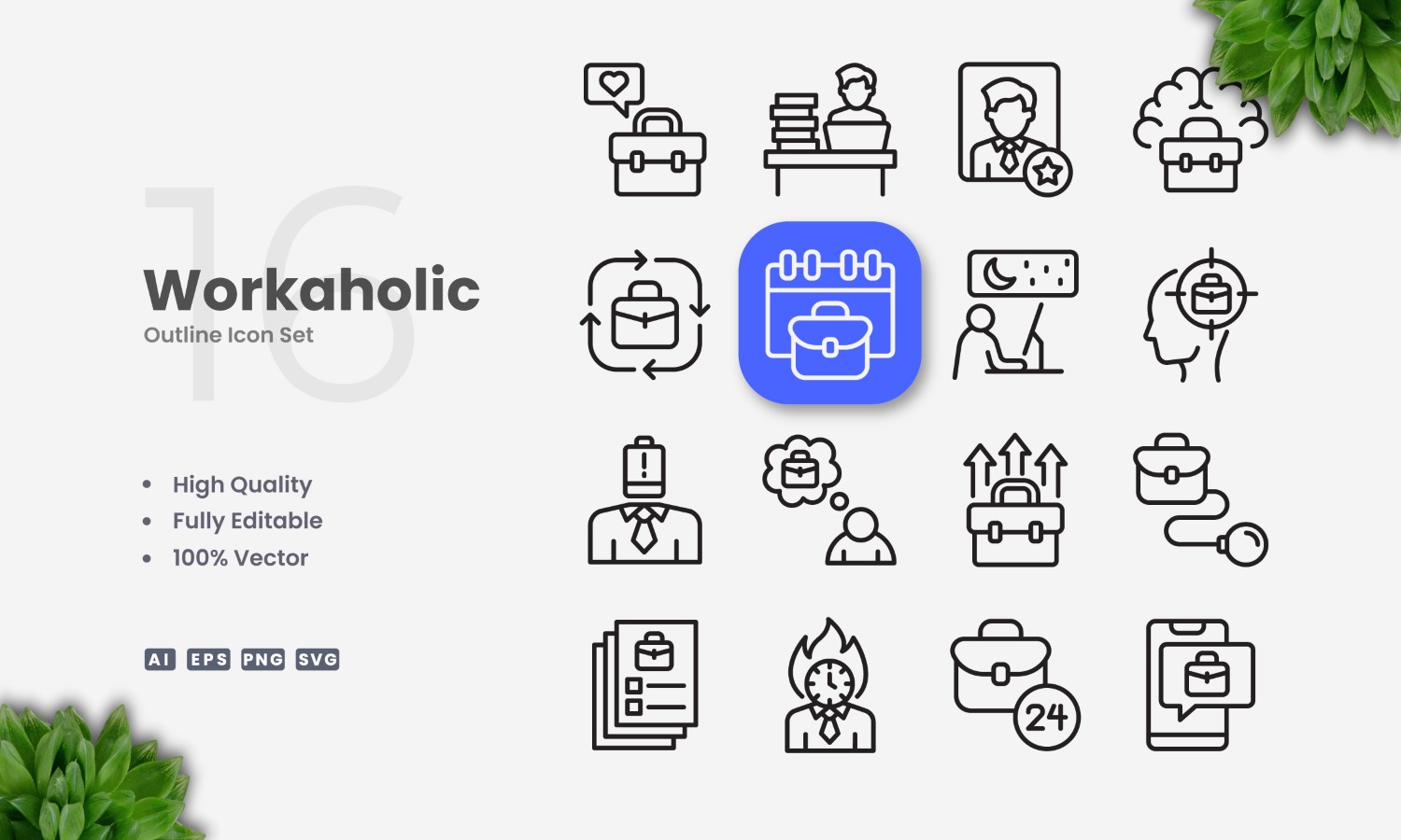 16 Workaholic Outline Icon Set