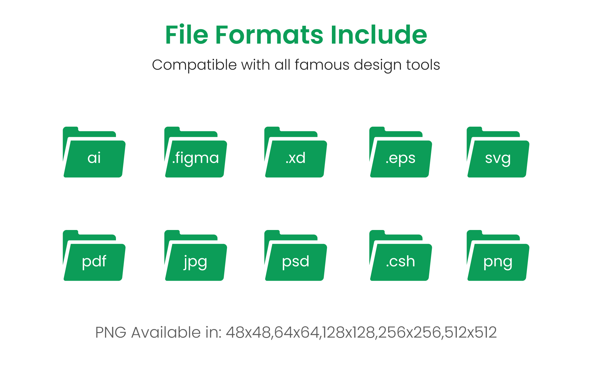 - Ai, Eps, Jpg, Pdf, Svg, Png, Psd, Csh, Adobe Xd and figma file formats Included.