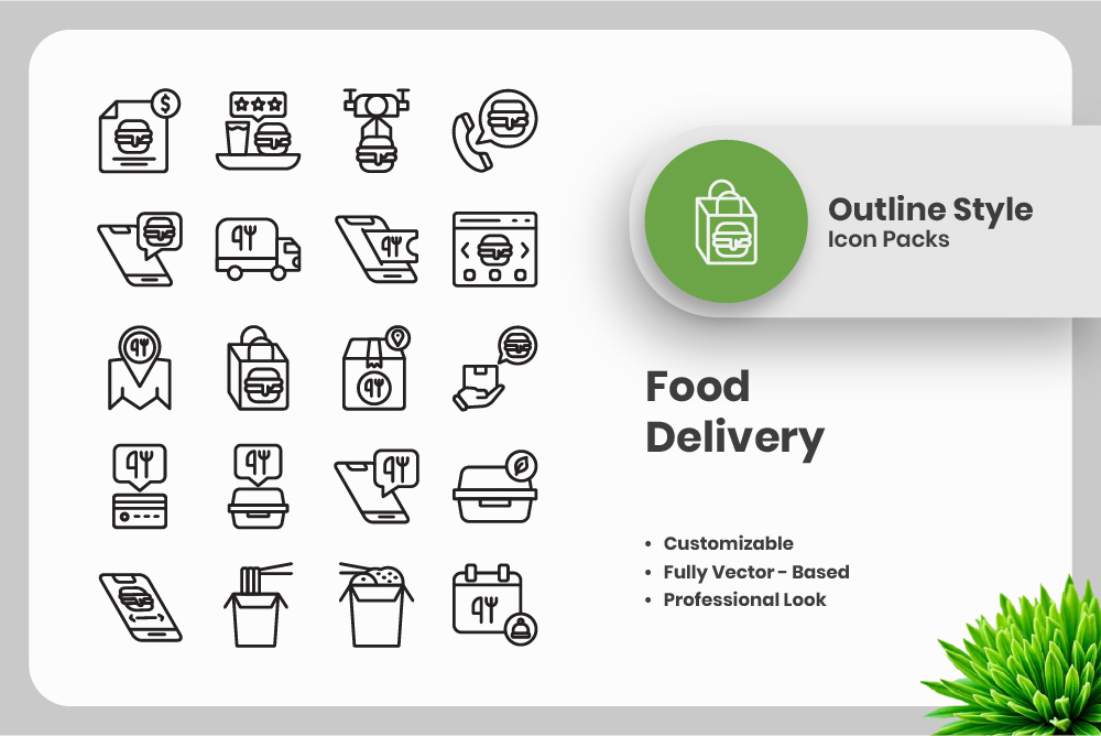 20 Set of Food Delivery Outline Icon Collection Icon Set