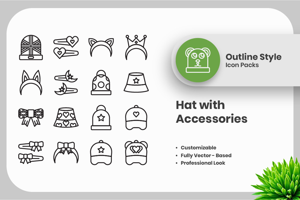 20 Set of Hat with Accessories Outline Icon Collection Icon Set