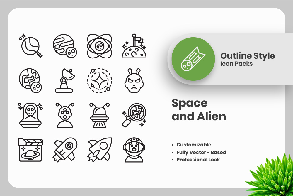 20 Set of Space and Alien Outline Icon Collection Icon Set