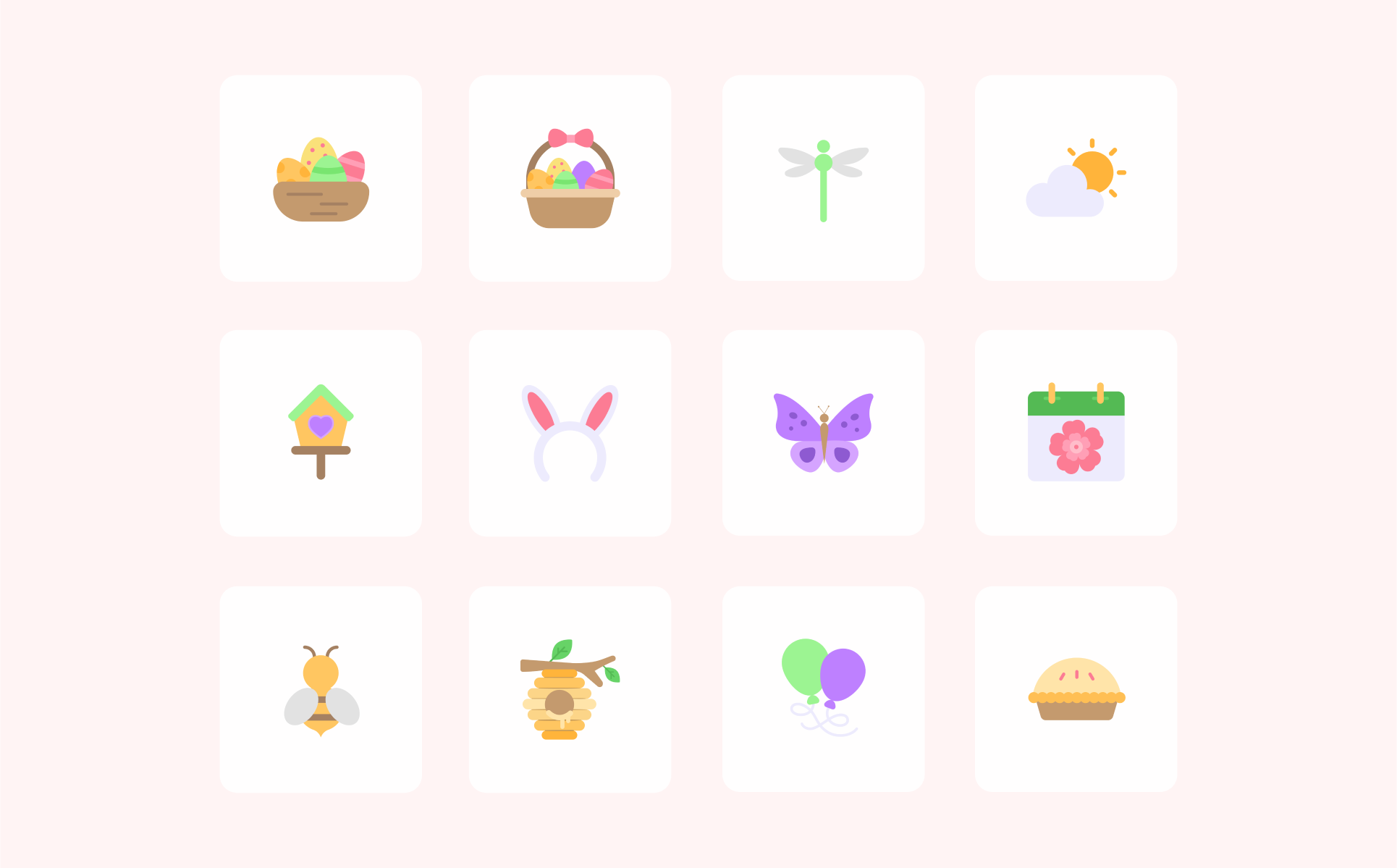 Embrace the beauty of spring with our 24 Spring Icon Pack, designed to bring a fresh and lively touch to your creative projects! Whether you're working on seasonal marketing, website designs, or social media content, these spring vector icons will add a delightful charm to your visuals.