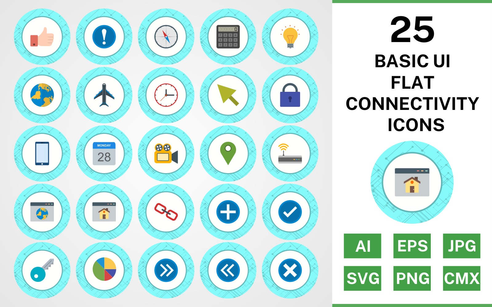 Download this premium 25 Basic ui Flat Connectivity Icon Set published on TemplateMonster.