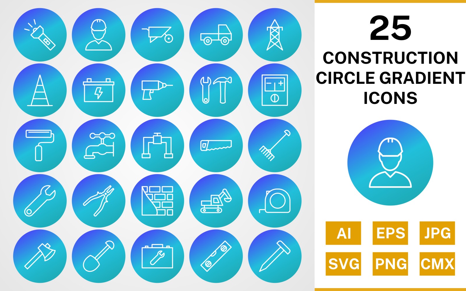 Download this premium 25 Construction Circle Gradient Icon Set published on TemplateMonster.