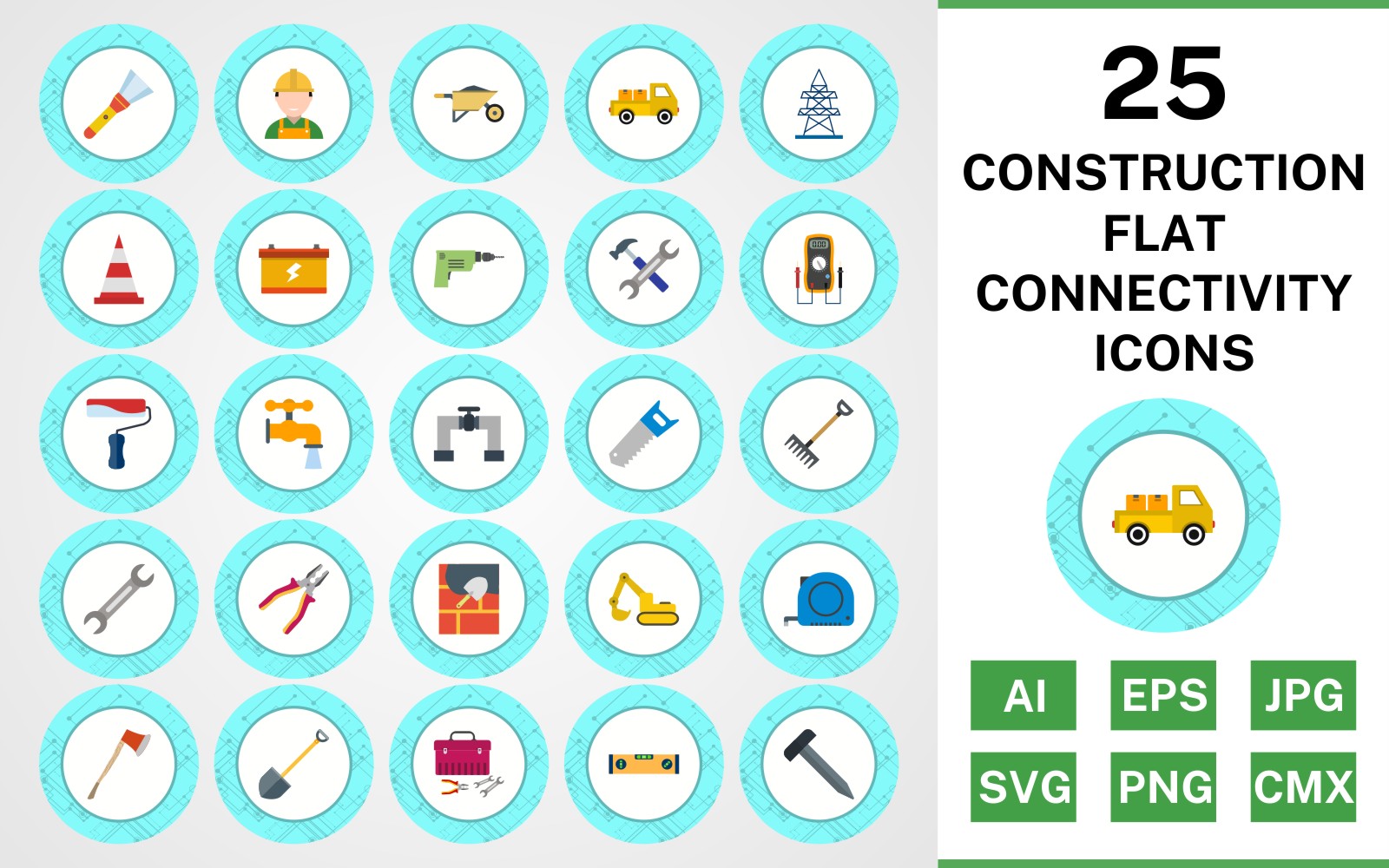 Download this premium 25 Construction Flat Connectivity Icon Set published on TemplateMonster.