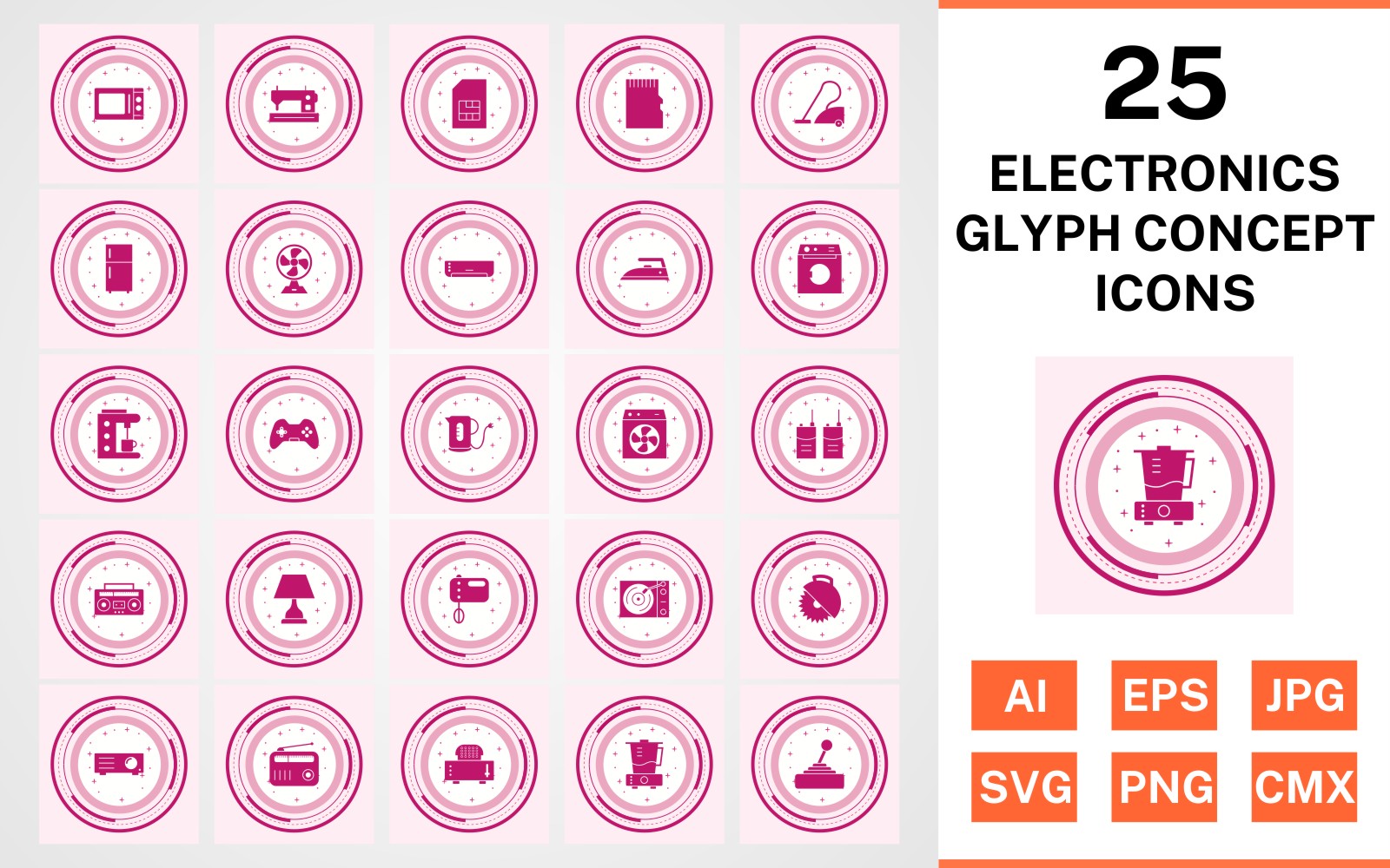 Download this premium 25 Electronic Devices Glyph Concept Icon Set published on TemplateMonster.