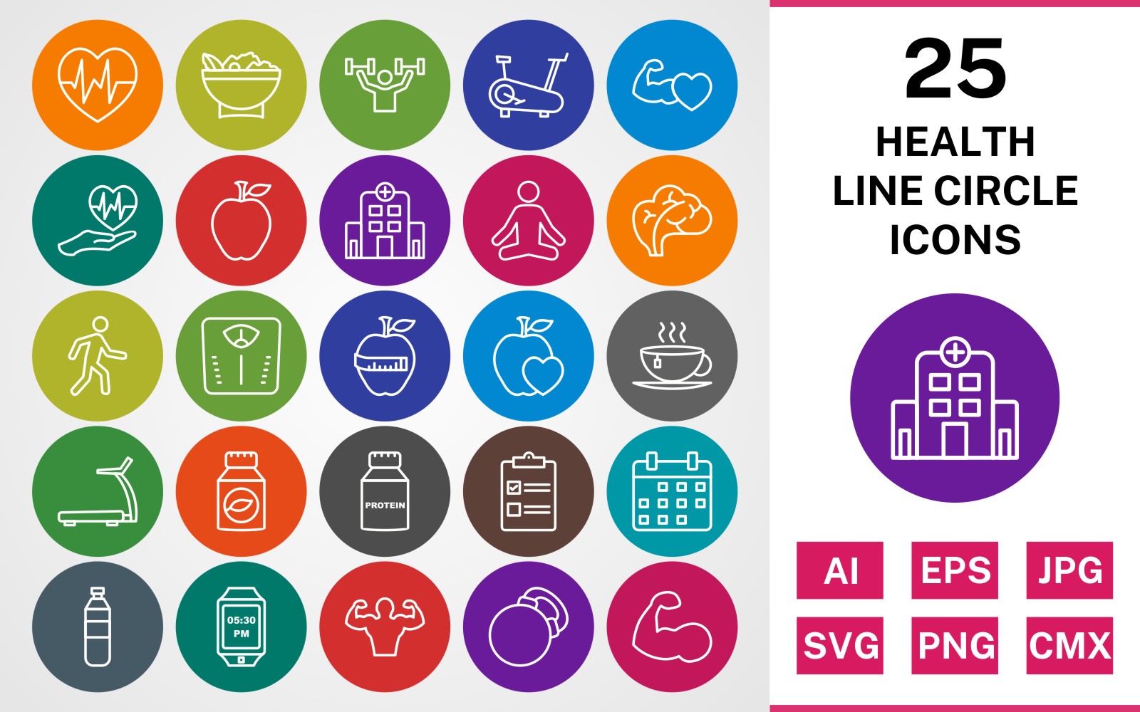 25 HEALTH LINE CIRCLE PACK Icon Set