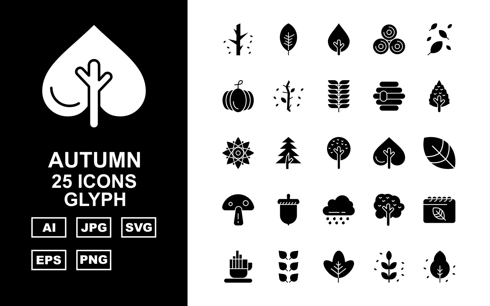 Download this premium 25 Premium Autumn Glyph Icon Set published on TemplateMonster.