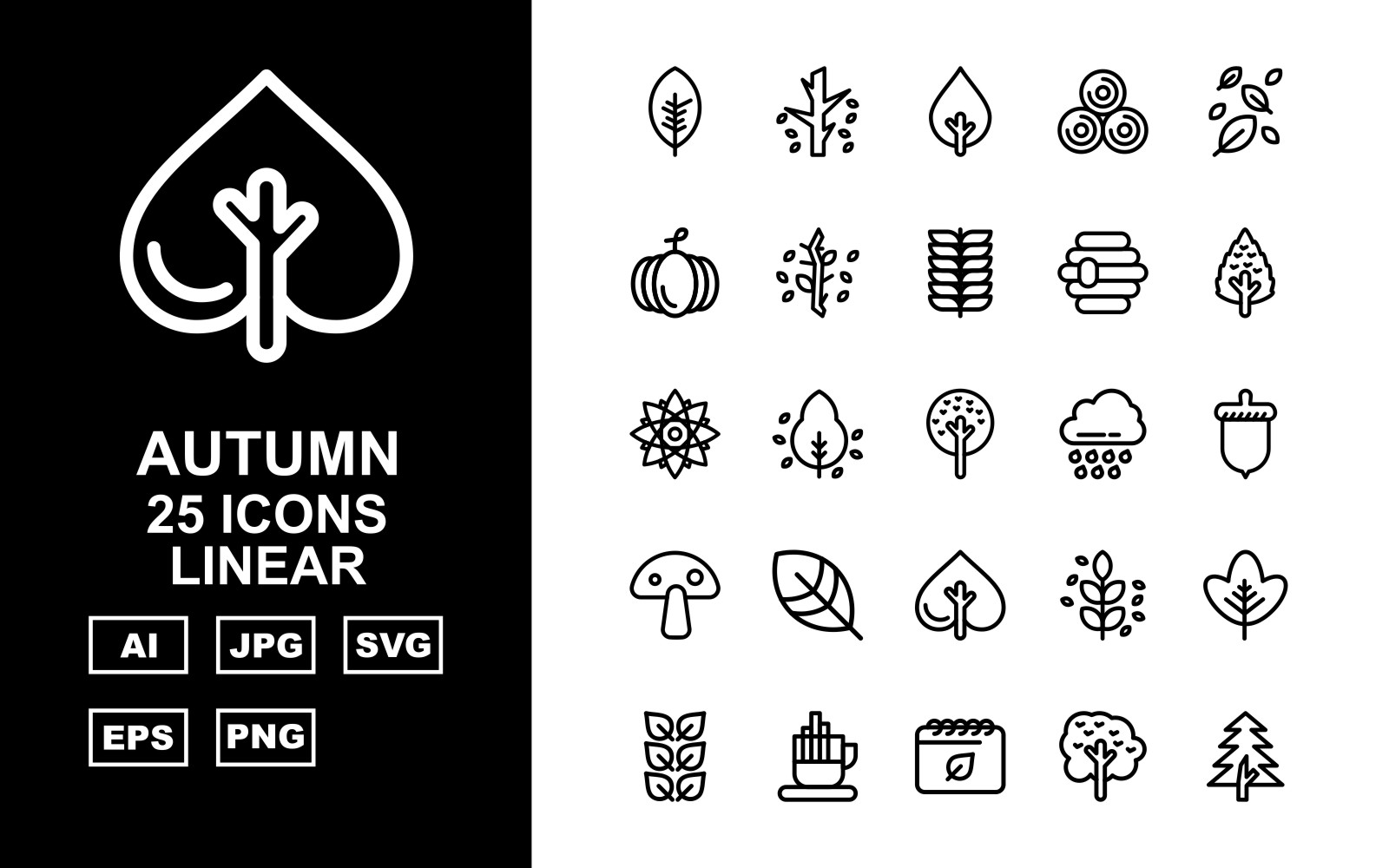 Download this premium 25 Premium Autumn Linear Icon Set published on TemplateMonster.