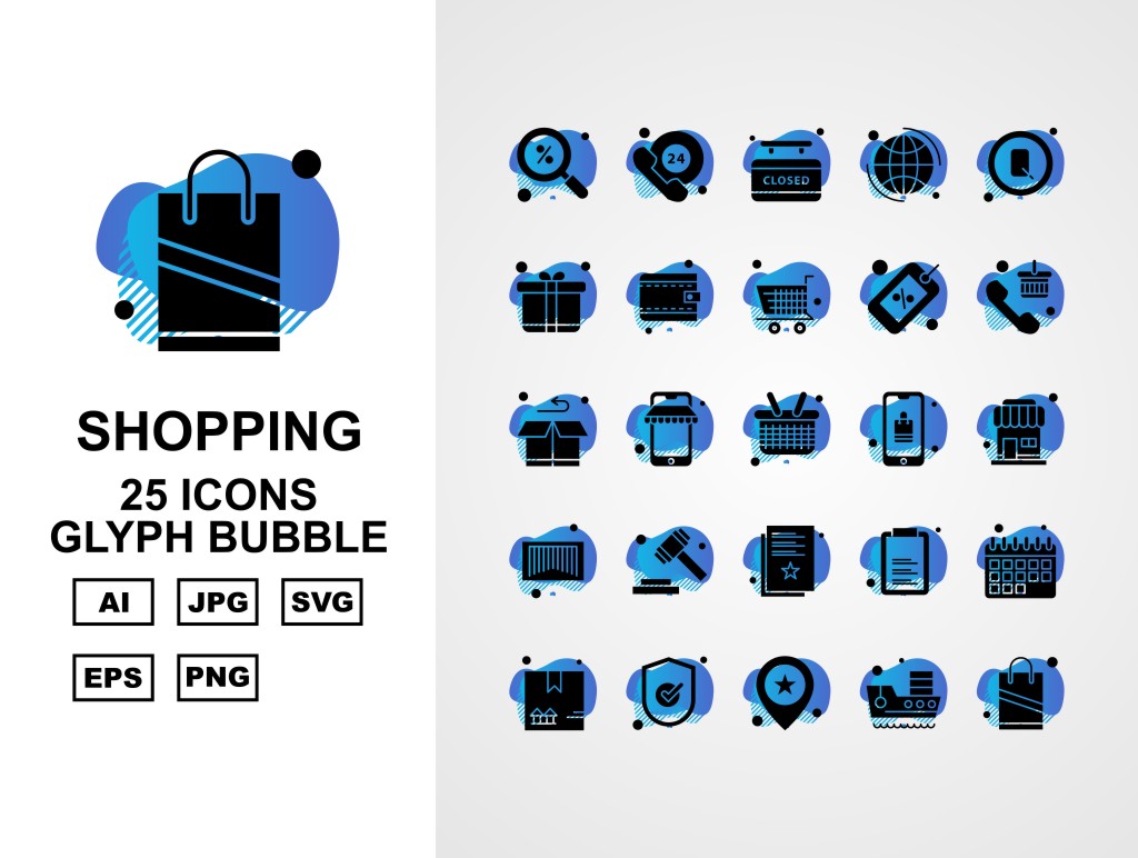 Download this premium 25 Premium Business Glyph Bubble Icon Set published on TemplateMonster.