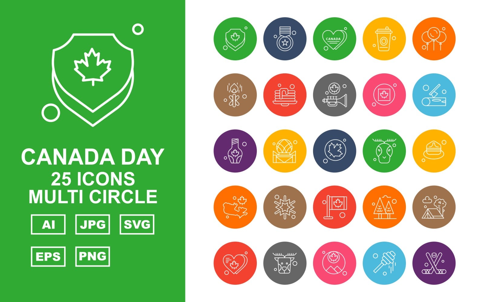 Download this premium 25 Premium Canada day Multi Circle Icon Set published on TemplateMonster.