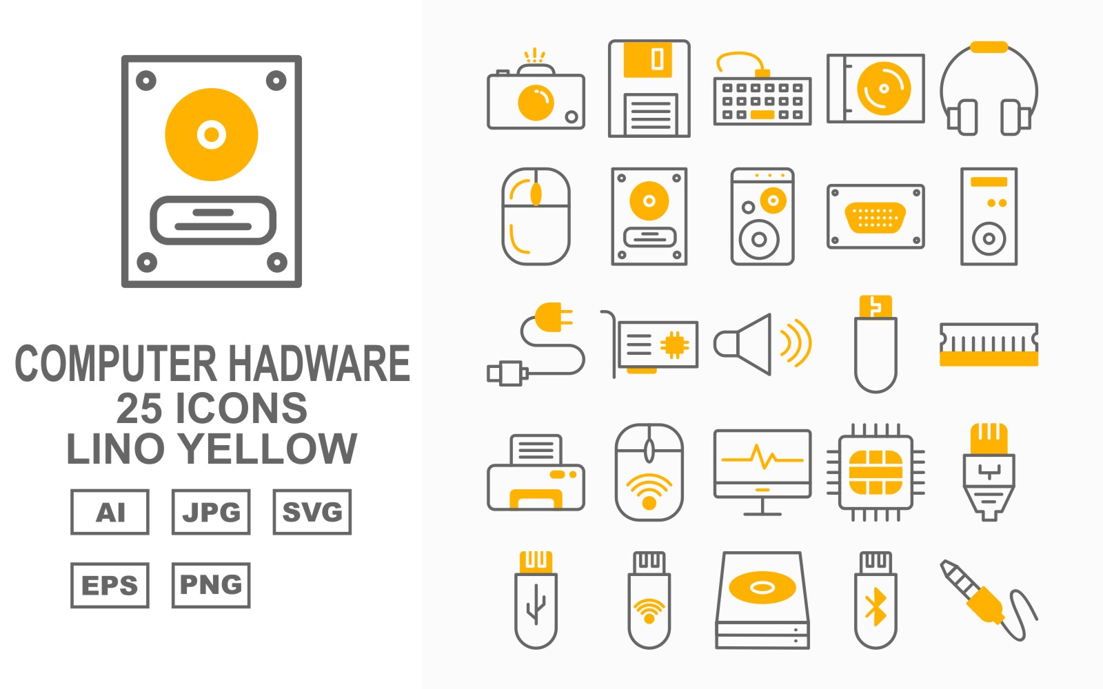 25 Premium Computer Hardware Lino Yellow Icon Set