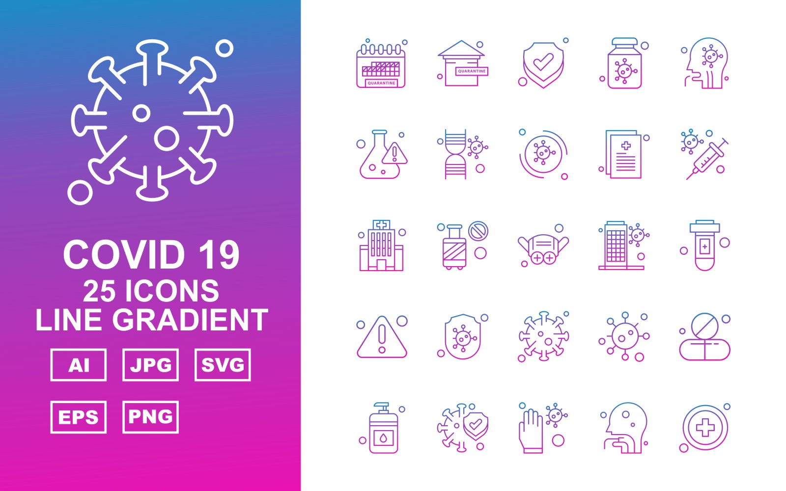 25 Premium Covid 19 Line Gradient Icon Set