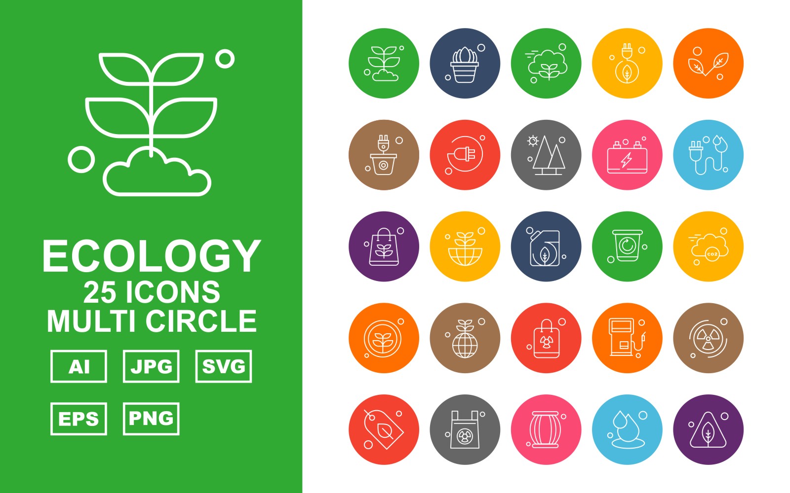 25 Premium Ecology Multi Circle Icon Set