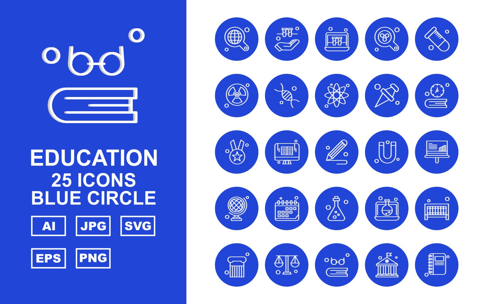Download this premium 25 Premium Education Blue Circle Icon Set published on TemplateMonster.