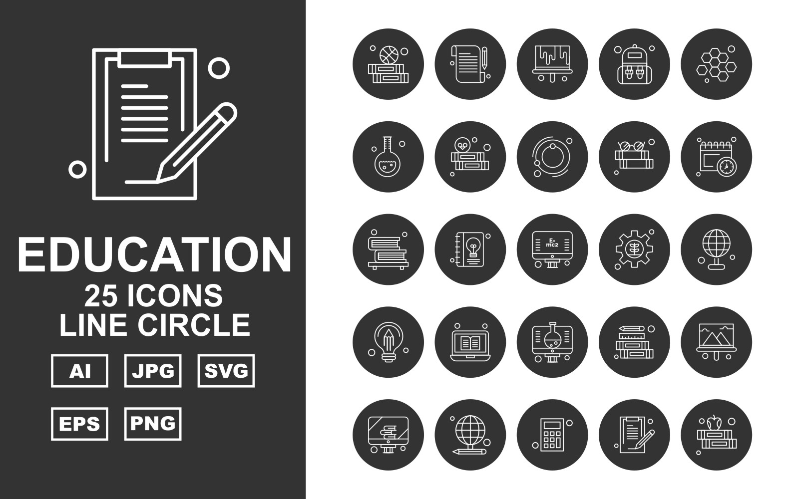 Download this premium 25 Premium Education Line Circle Iconset published on TemplateMonster.