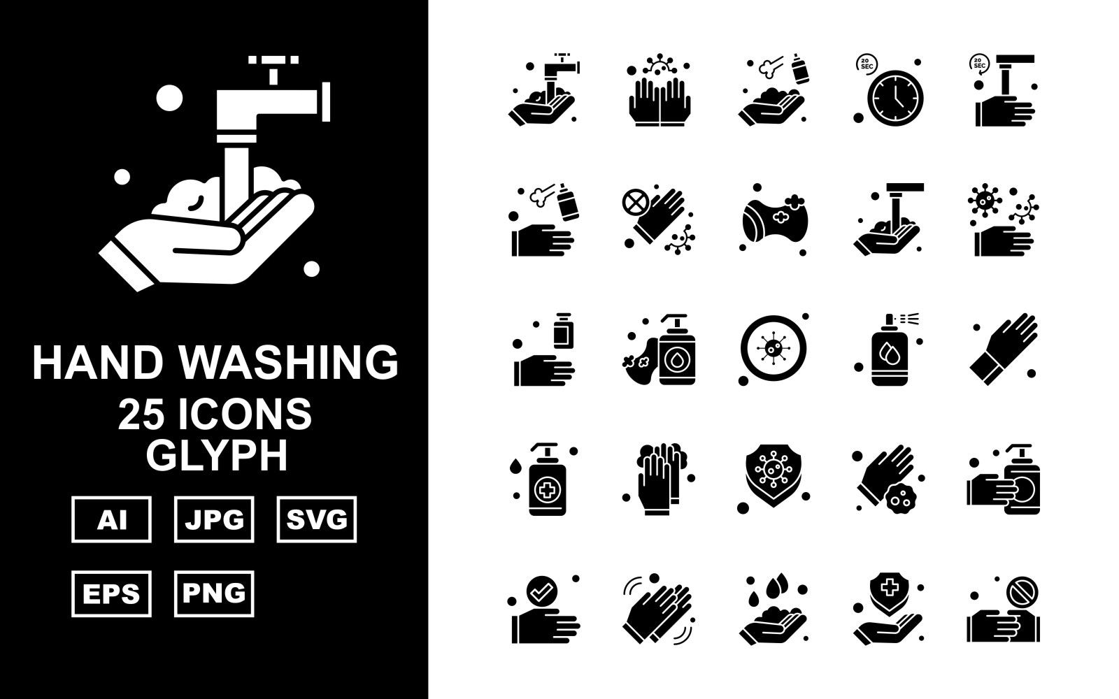 25 Premium Hand Washing Glyph Iconset Icon Set