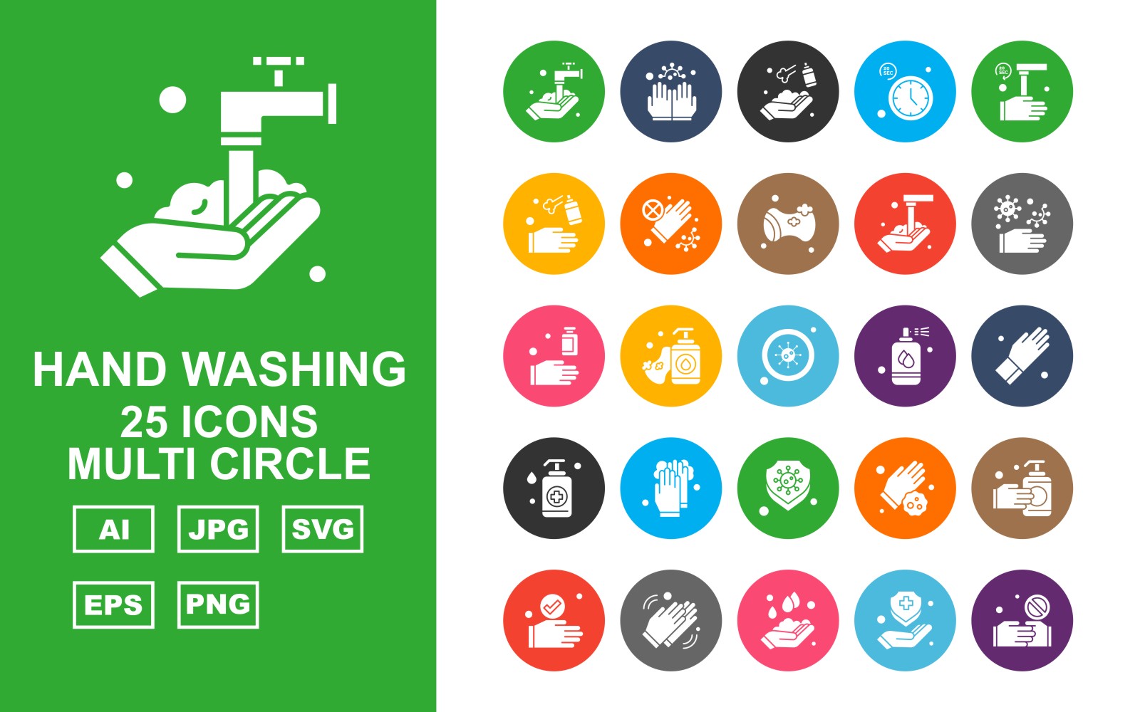 25 Premium Hand Washing Multi Circle Iconset Icon Set