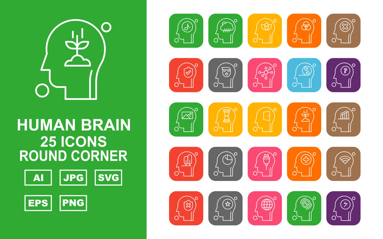 Download this premium 25 Premium Human Brain Round Corner Icon Set published on TemplateMonster.