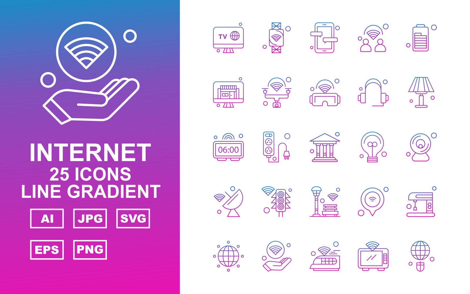 Download this premium 25 Premium Internet II Line Gradient Icon Set published on TemplateMonster.