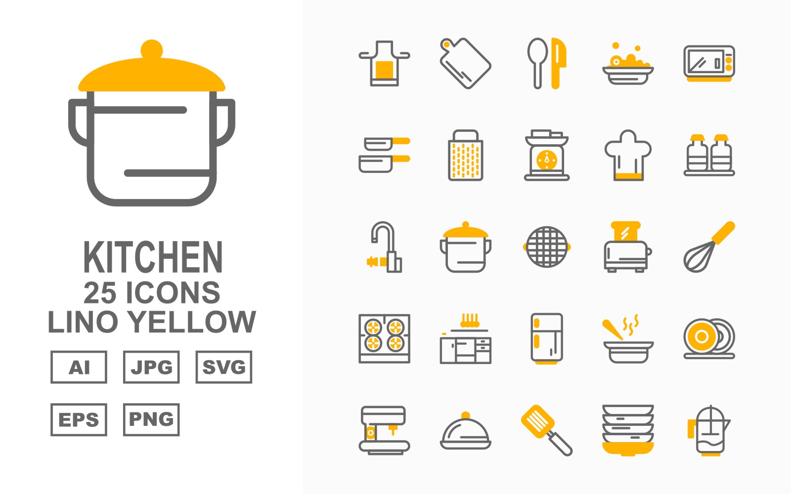Download this premium 25 Premium Kitchen Lino Yellow Icon Set published on TemplateMonster.