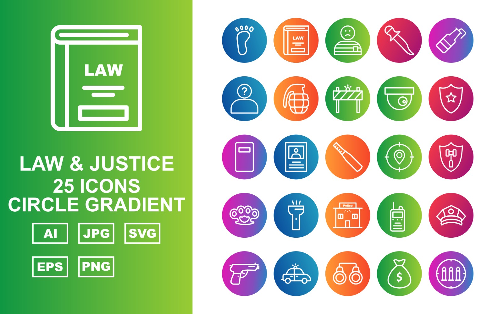 Download this premium 25 Premium Law And Justice Circle Gradient Pack Icon Set published on TemplateMonster.