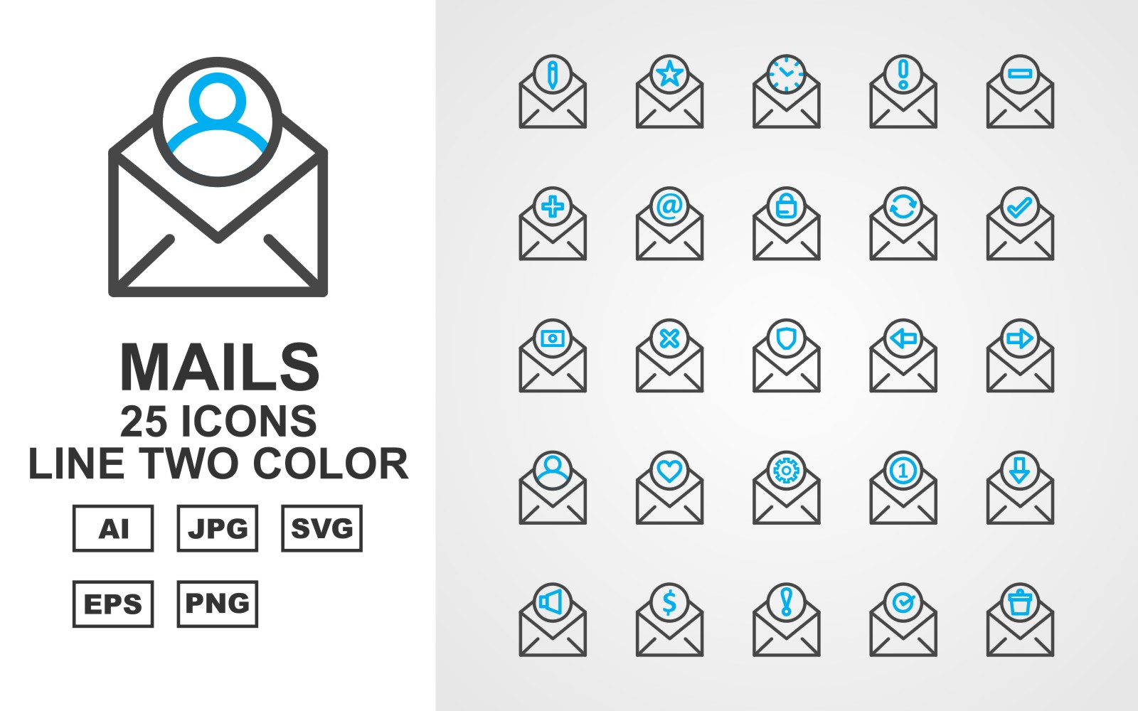 Download this premium 25 Premium Mails Line Two Color Icon Set published on TemplateMonster.