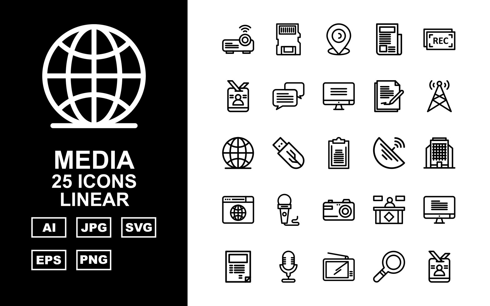 25 Premium Media Linear Icon Set