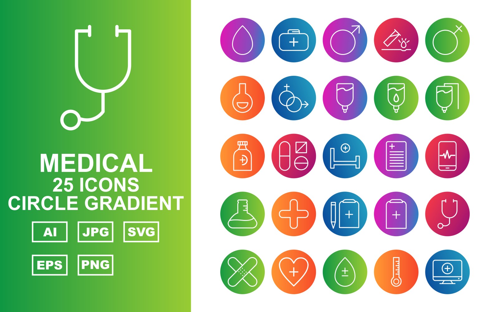 Download this premium 25 Premium Medical Circle Gradient Icon Set published on TemplateMonster.