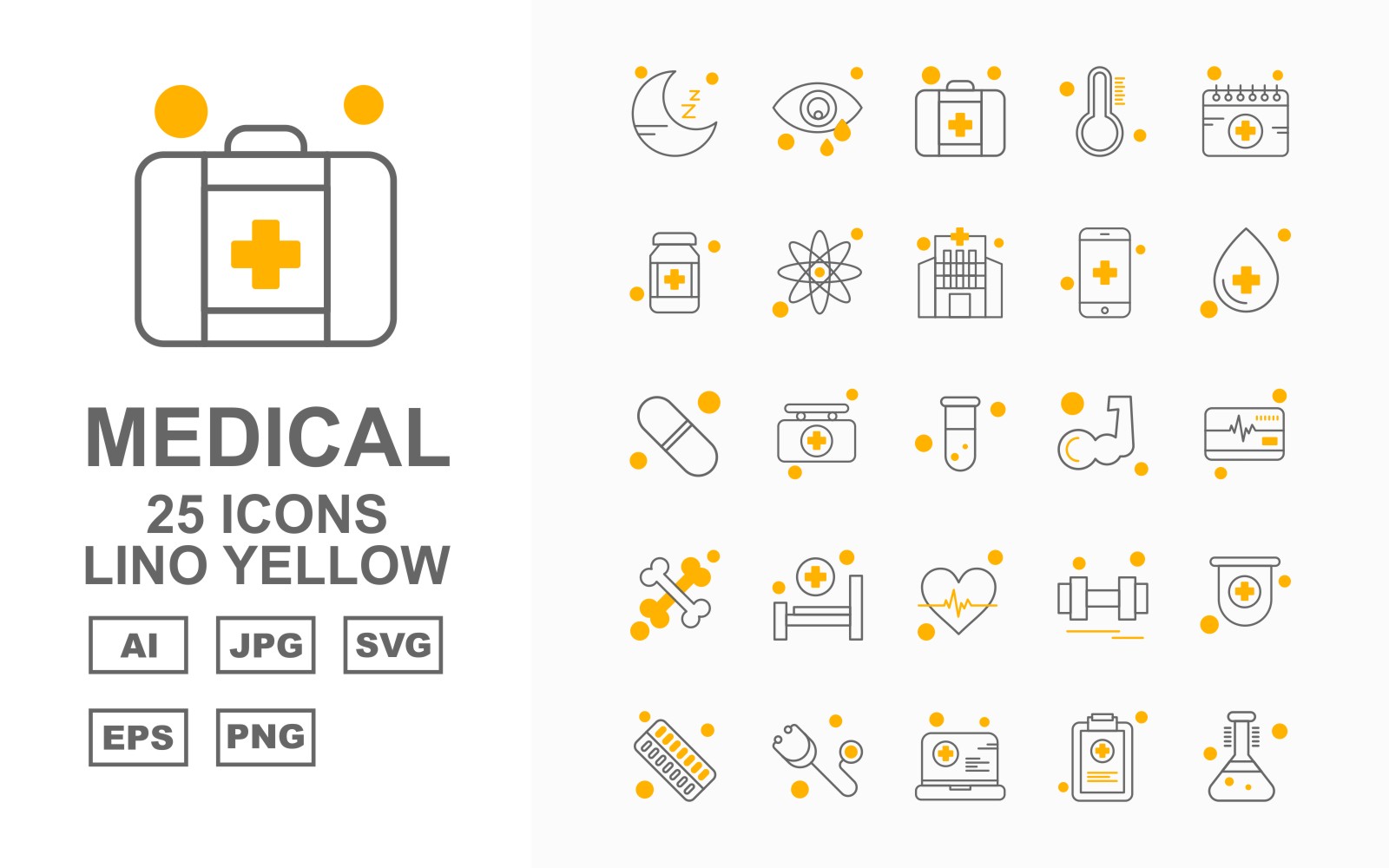 Download this premium 25 Premium Medical Lino Yellow Icon Set published on TemplateMonster.
