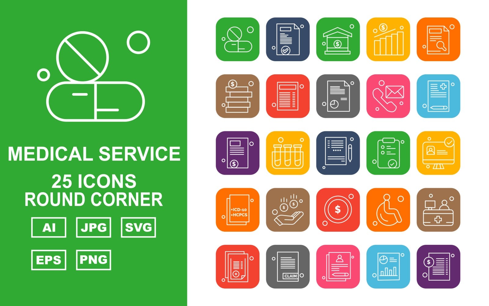 25 Premium Medical Service Round Corner Icon Pack Set Icon Set