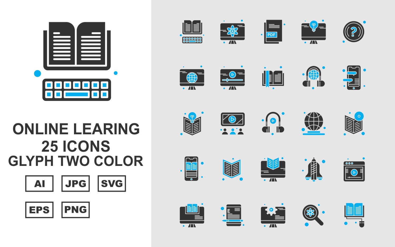 25 Premium Online Learning Glyph Two Color Icon Set