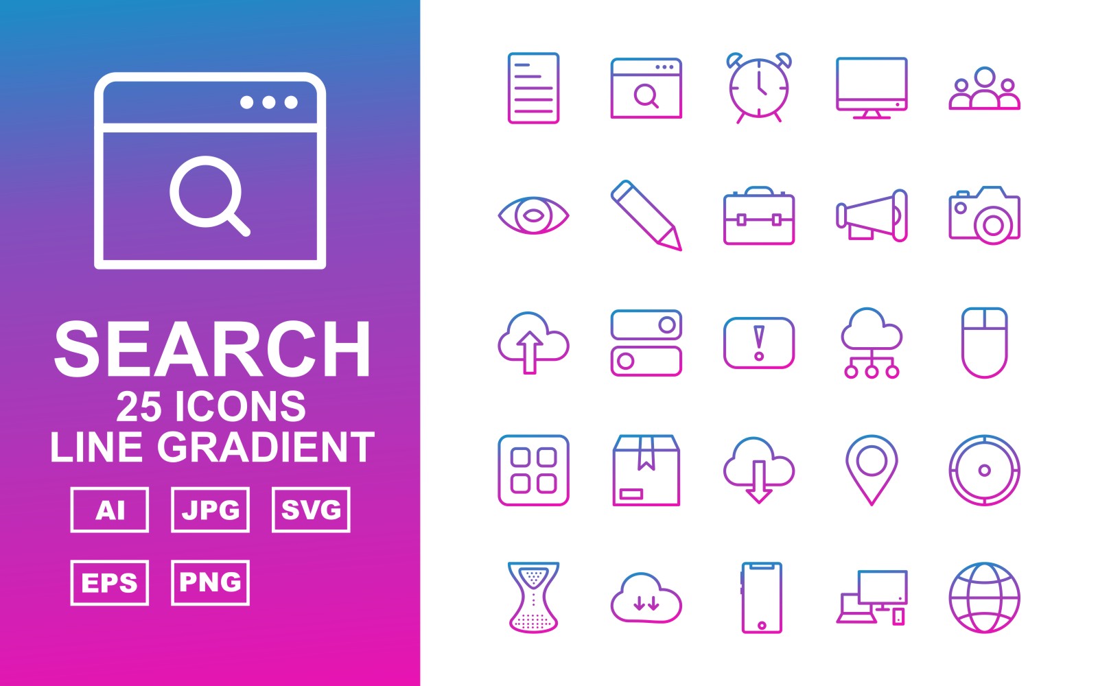 25 Premium Search Engine Optimization (SEO) Line Gradient Iconset Icon Set