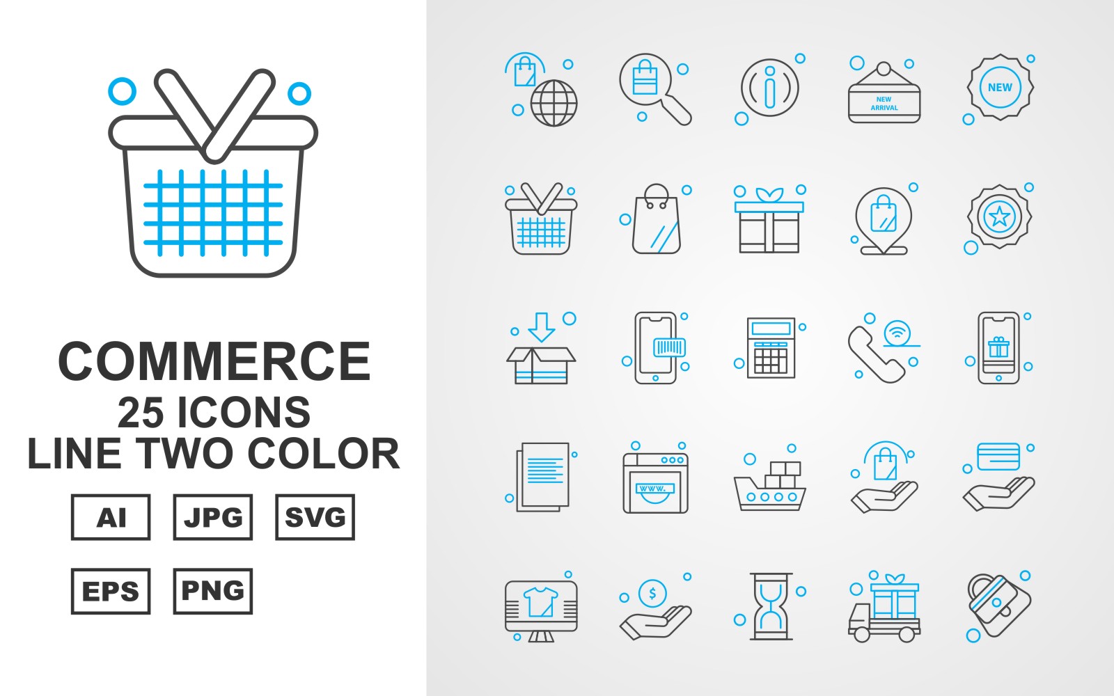 25 Premium Shopping And Commerce Line Two Color Icon Set