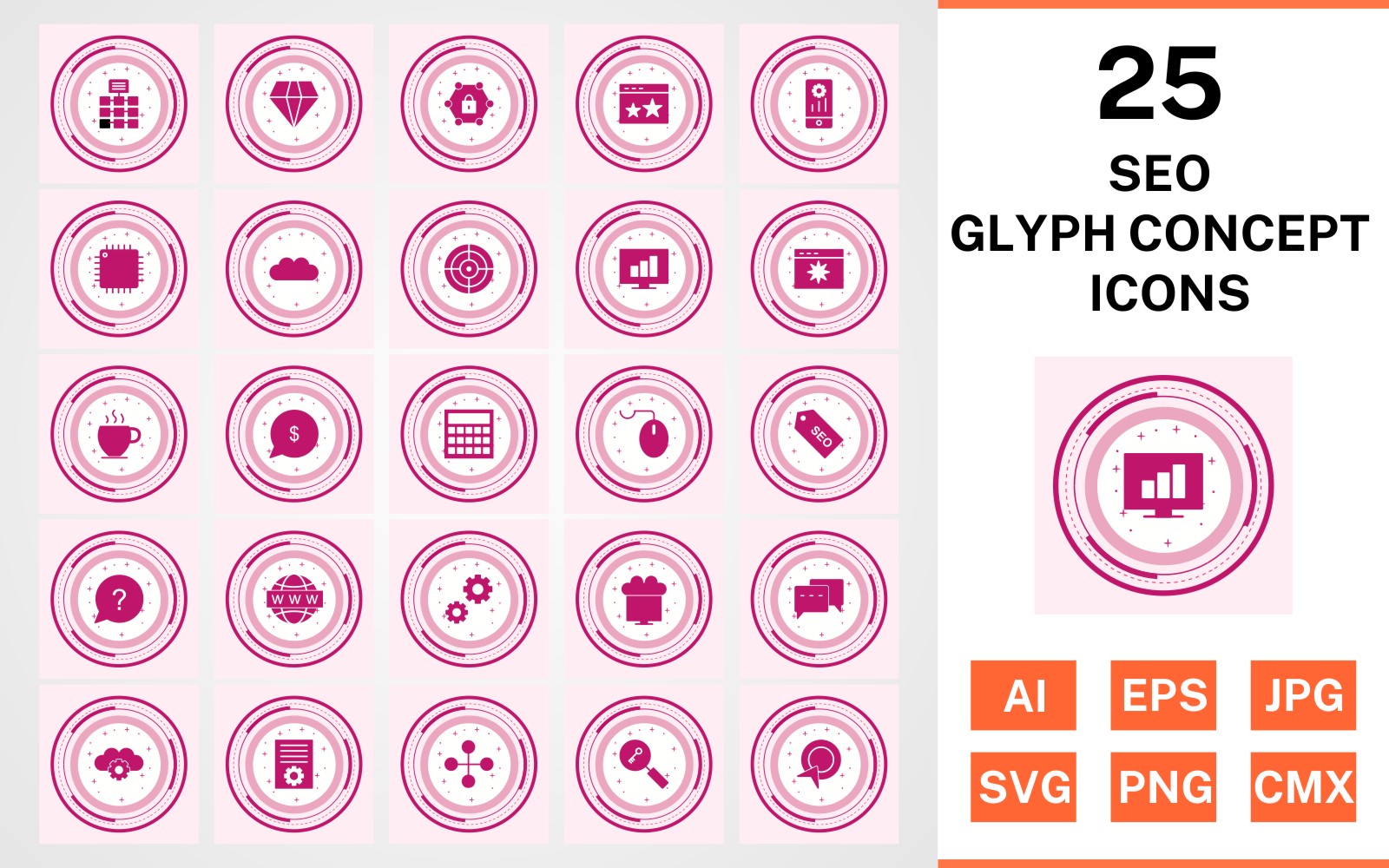 Download this premium 25 Seo Glyph Concept Icon Set published on TemplateMonster.