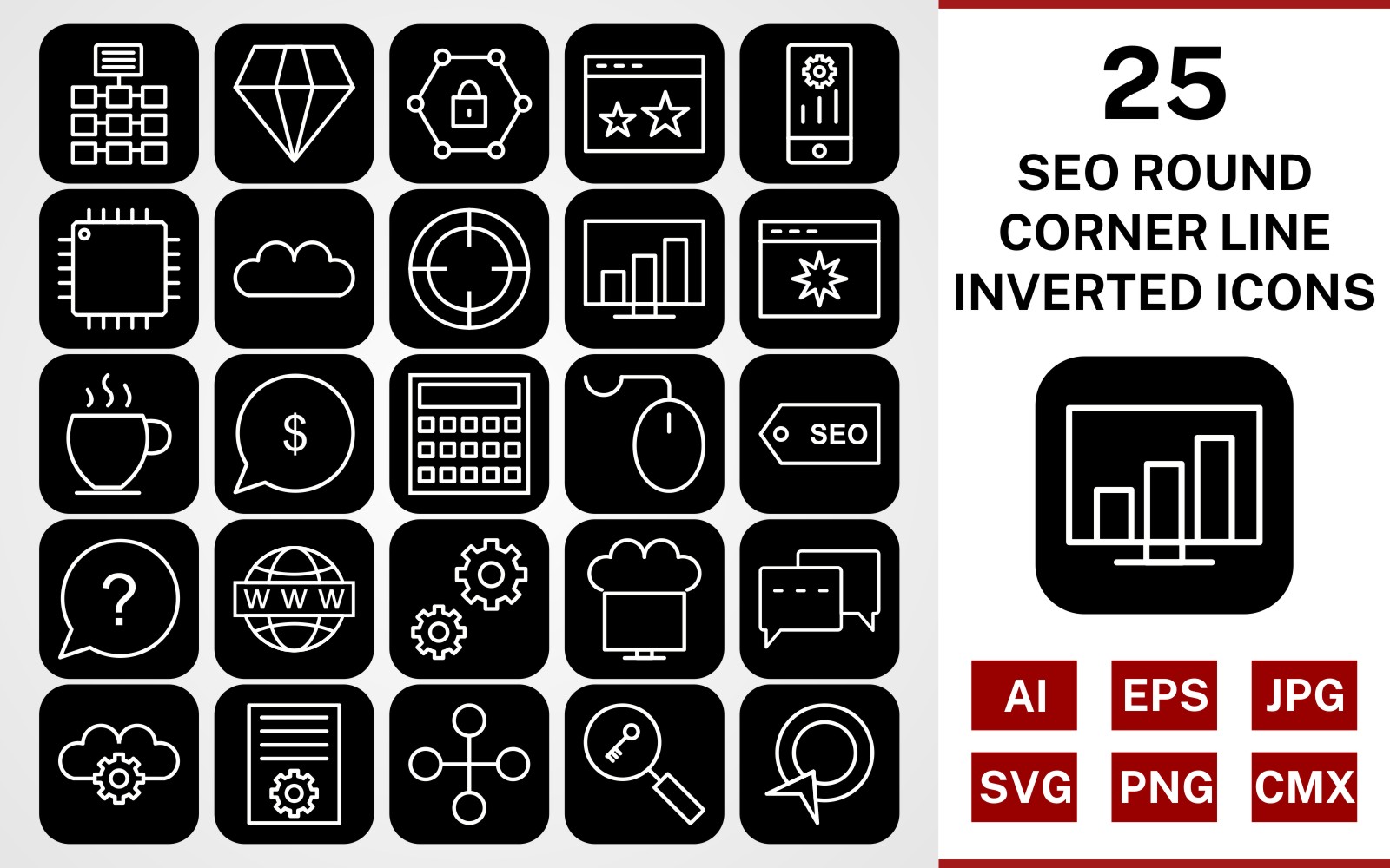 Download this premium 25 Seo Round Corner Line Inverted Icon Set published on TemplateMonster.